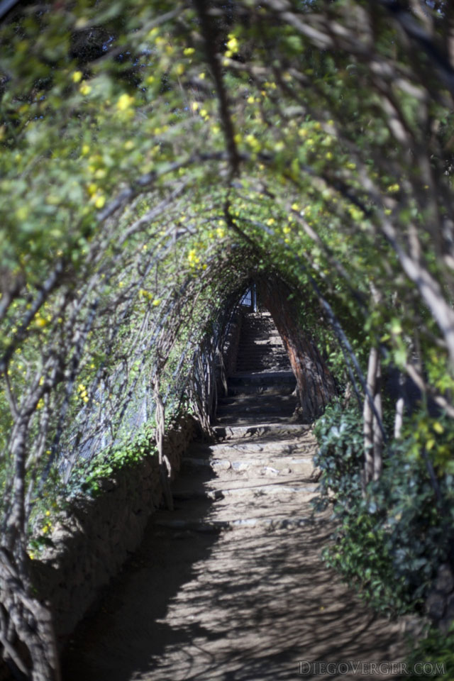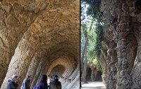 Passeggiando per il parco Güell si possono trovare paesaggi come questo in cui le strutture progettate da Gaudí si adattano all’ambiente simulando formazioni naturali, allo stesso tempo che svolgono un ruolo pratico, come questo viadotto che serve come un percorso pedonale sotto una strada per veicoli, in un mix di praticità ed arte immersi nella natura.